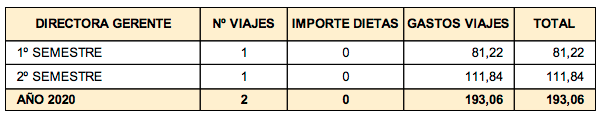 A continuación, se indican las indemnizaciones por razón del servicio relativas a gastos de viaje de la Gerente de FUCAS durante el ejercicio 2020, no habiendo percibido dietas en el ejercicio de referencia.